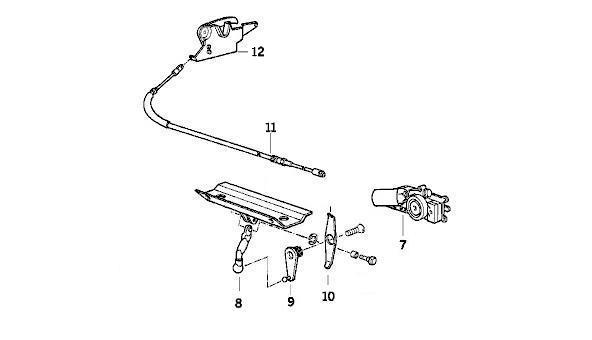 Den andra delen driver luckans låsning genom att vred nr 9 även hakar i vred nr 10 som ansluter till de två vajrar nr 11 som driver luckans låsklor nr 12 som finns på luckans högra och vänstra undersida.
